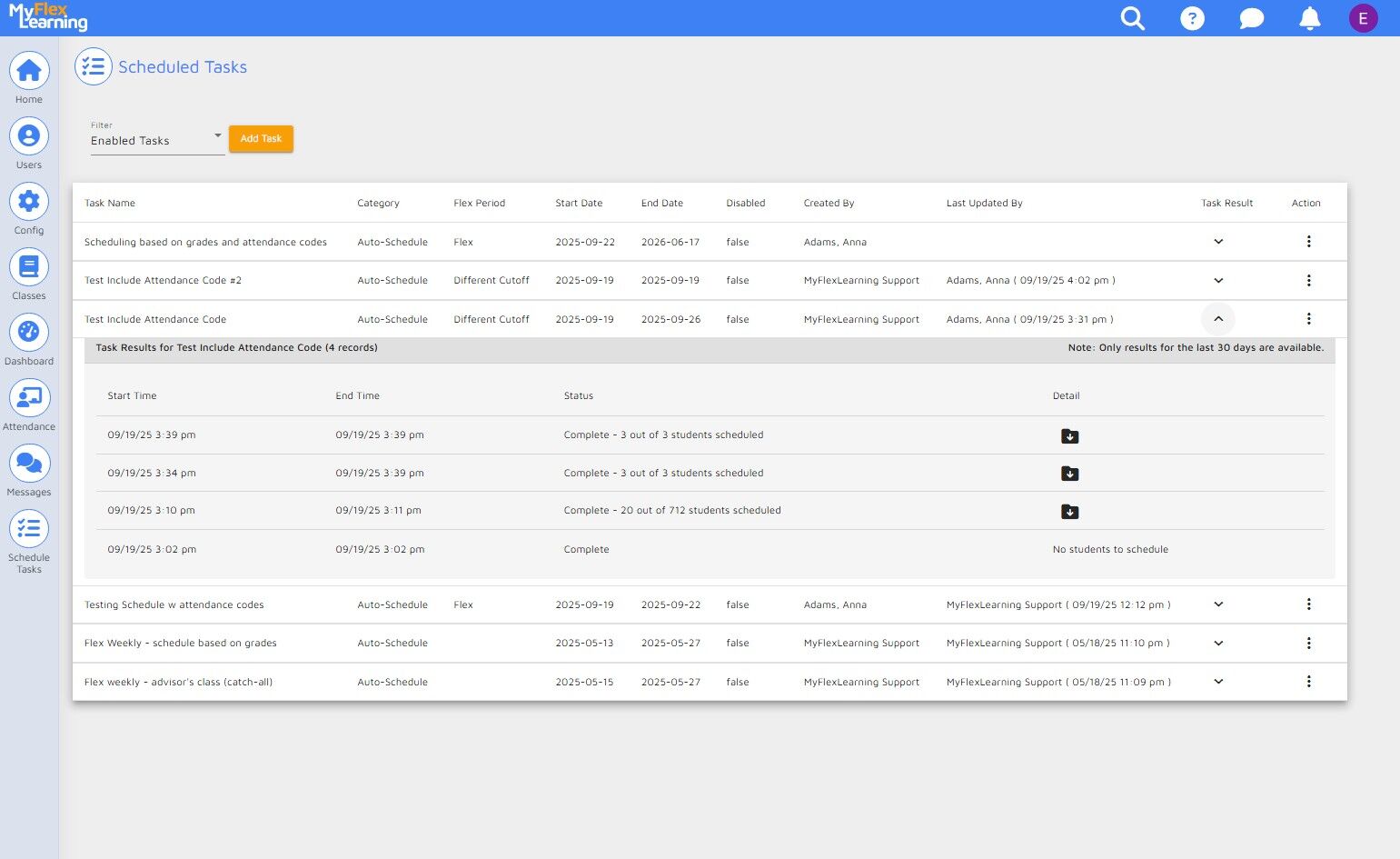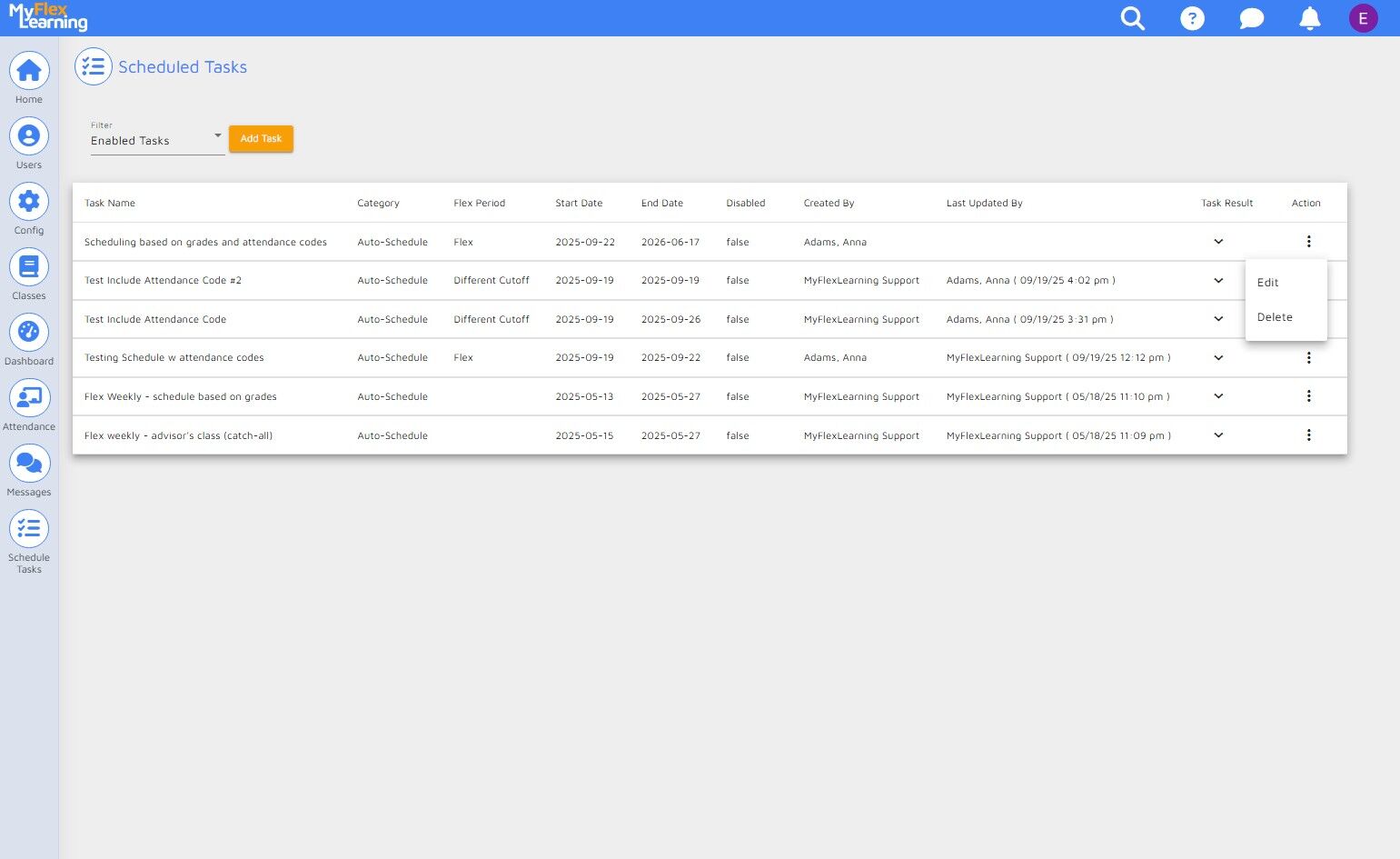 NOTE: If you do not see the "Add Task" button, your user account does not have the ability to create Scheduled Tasks.